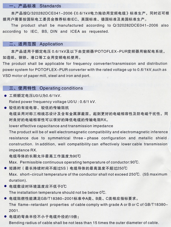 隨著頻率控制傳動技術的發(fā)展,頻率變速傳動系統(tǒng)是使用越來越廣泛,尤其是對采用快速切換的IGBT半導體現(xiàn)代變頻技術,脈沖頻率高而且更新時間僅毫秒之內(nèi),變頻器輸出中含有大量的諾波,對電動機繞組及電纜本身都有損害,同時它們會對周圍環(huán)境產(chǎn)生陽性磁場。為保持電力傳送系統(tǒng)以及變頻器控制正常工作,不受累積脈沖過電壓及電磁場干擾,因此連接變頻器與三相交流電機之間的電纜就要求具有抗干擾性能、較低的有效電容及較低的傳輸阻抗。